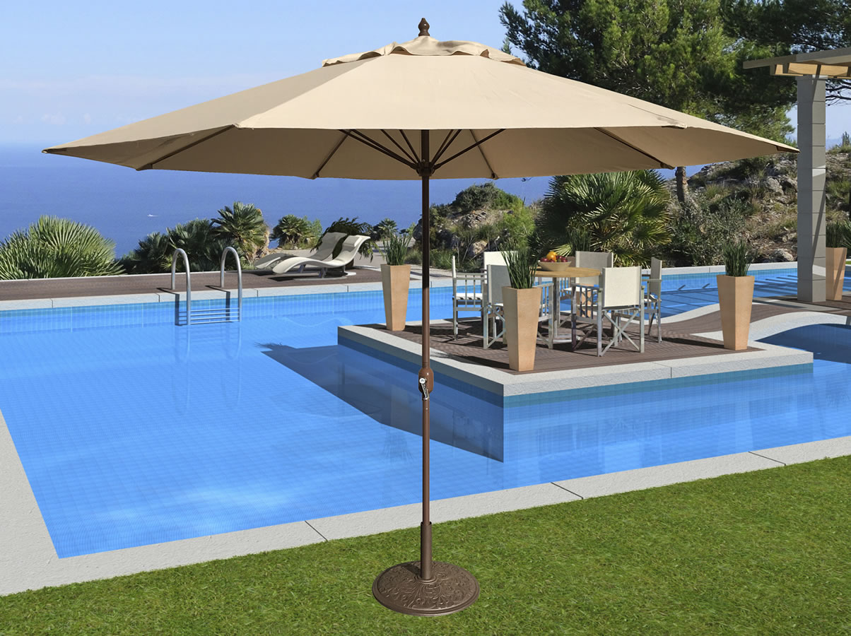 686B32 11' Aluminum Bronze Market Umbrella Beige Olefin cover